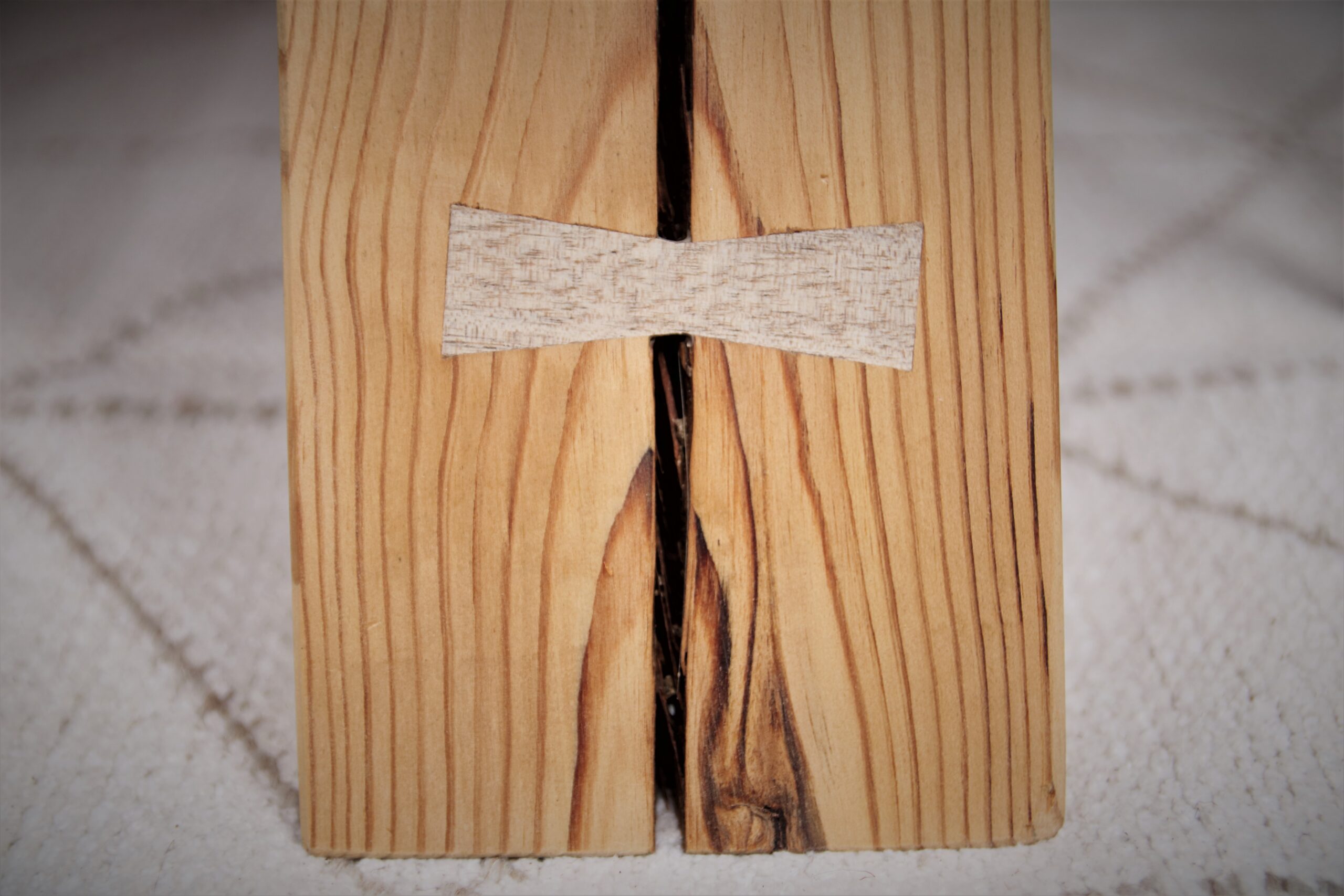 Por la naturaleza de la madera la pieza muestra infinidad de cicatrices, pero no te preocupes: en la tapa las hemos rellenado con resina y pulido para que disfrutes de una superficie perfectamente lisa y segura sin perder un ápice de su carácter único.
