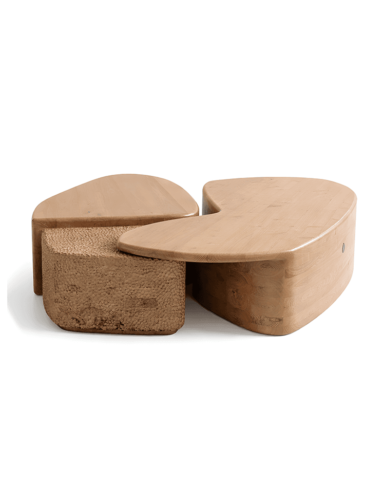black marble, reclaimed oak & chestnut, woodchip and shredded carton mortar, woodschaving encased in epoxy resin