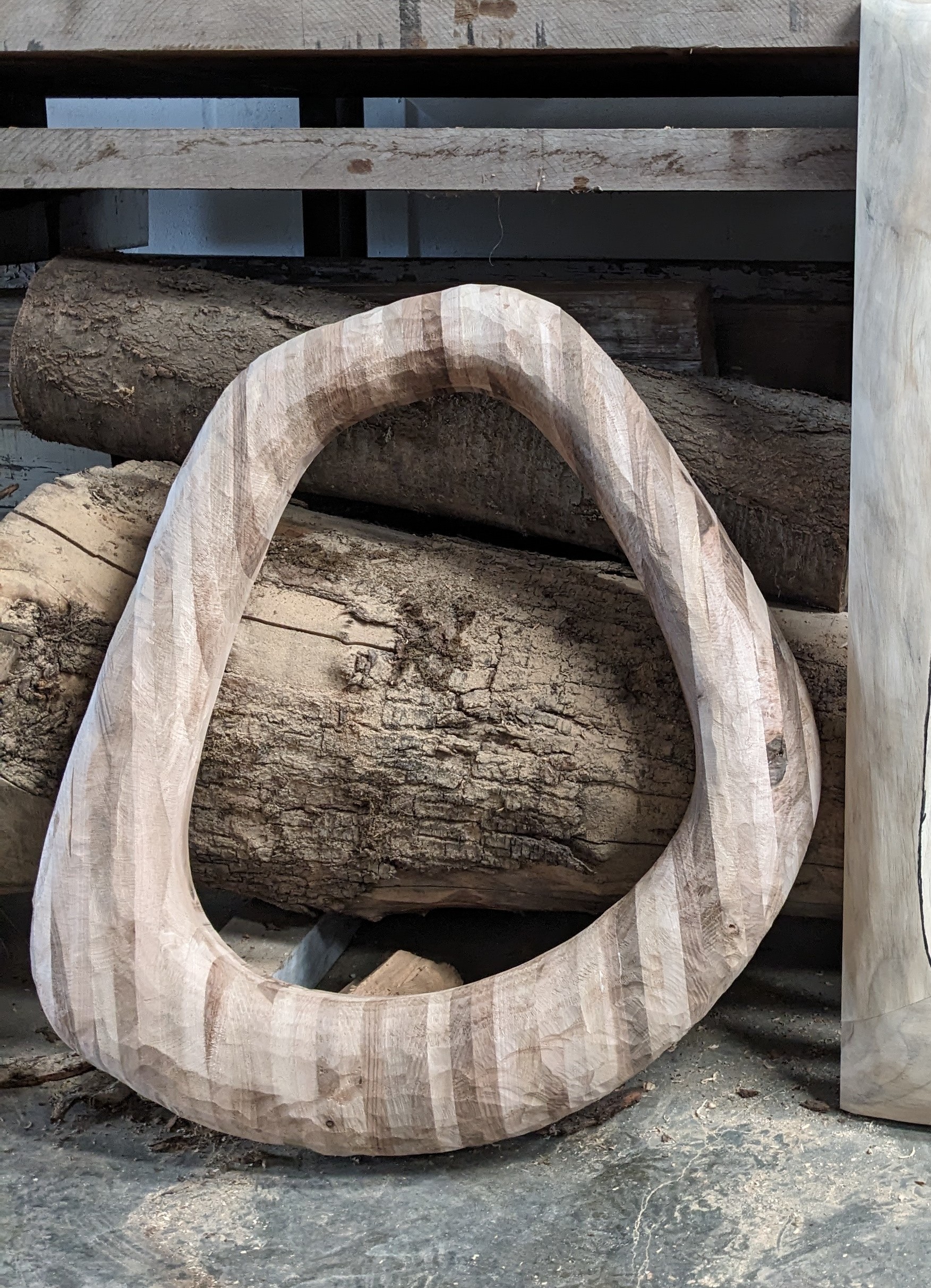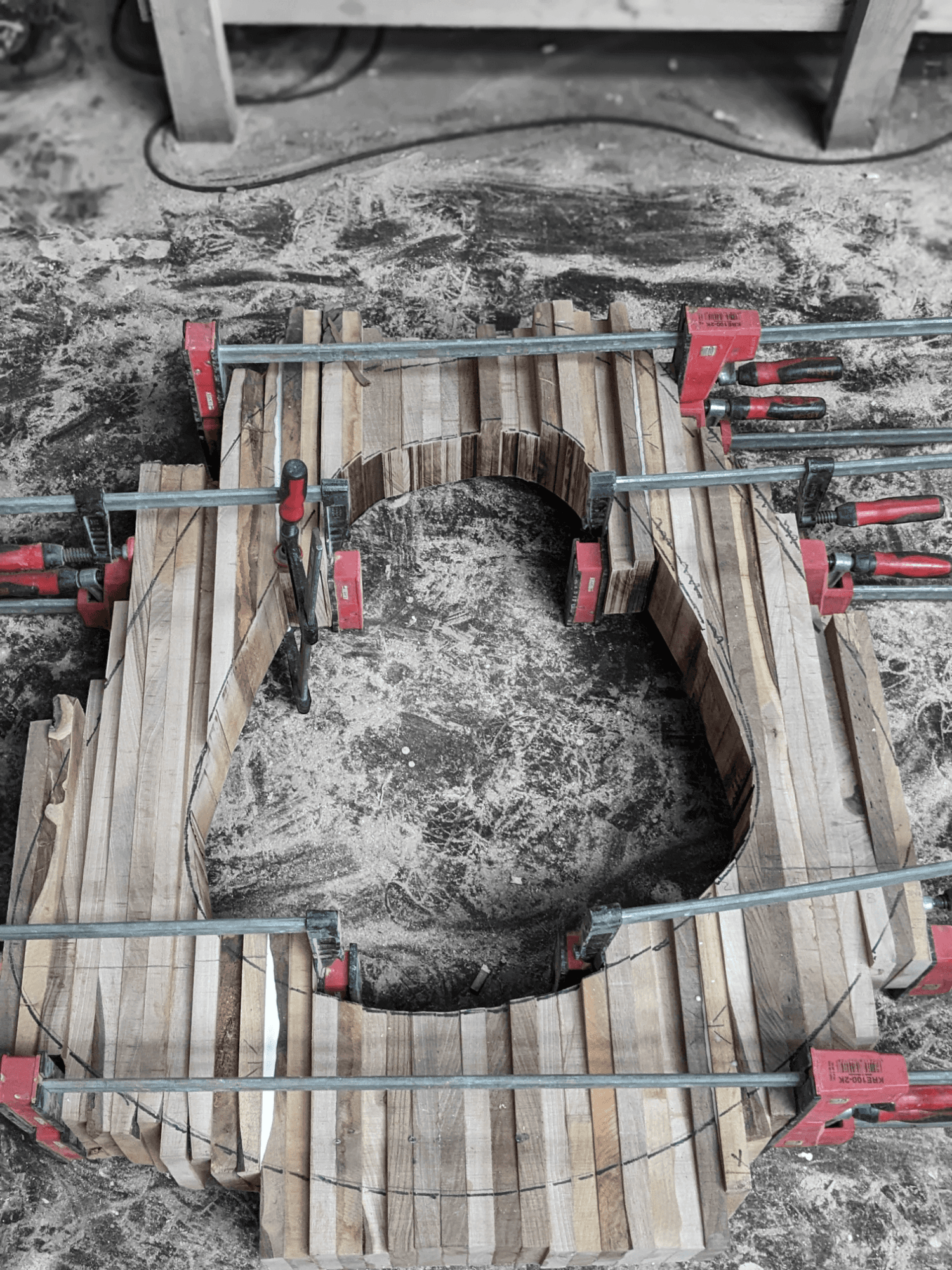 The solution was to stop trying to match and start working with the spectrum instead. The frame is built from vertical strips of uniform thickness, each a different tone, presented in sequence — not as a problem to solve but as the point. A gradient that could only exist because the wood insisted on it.