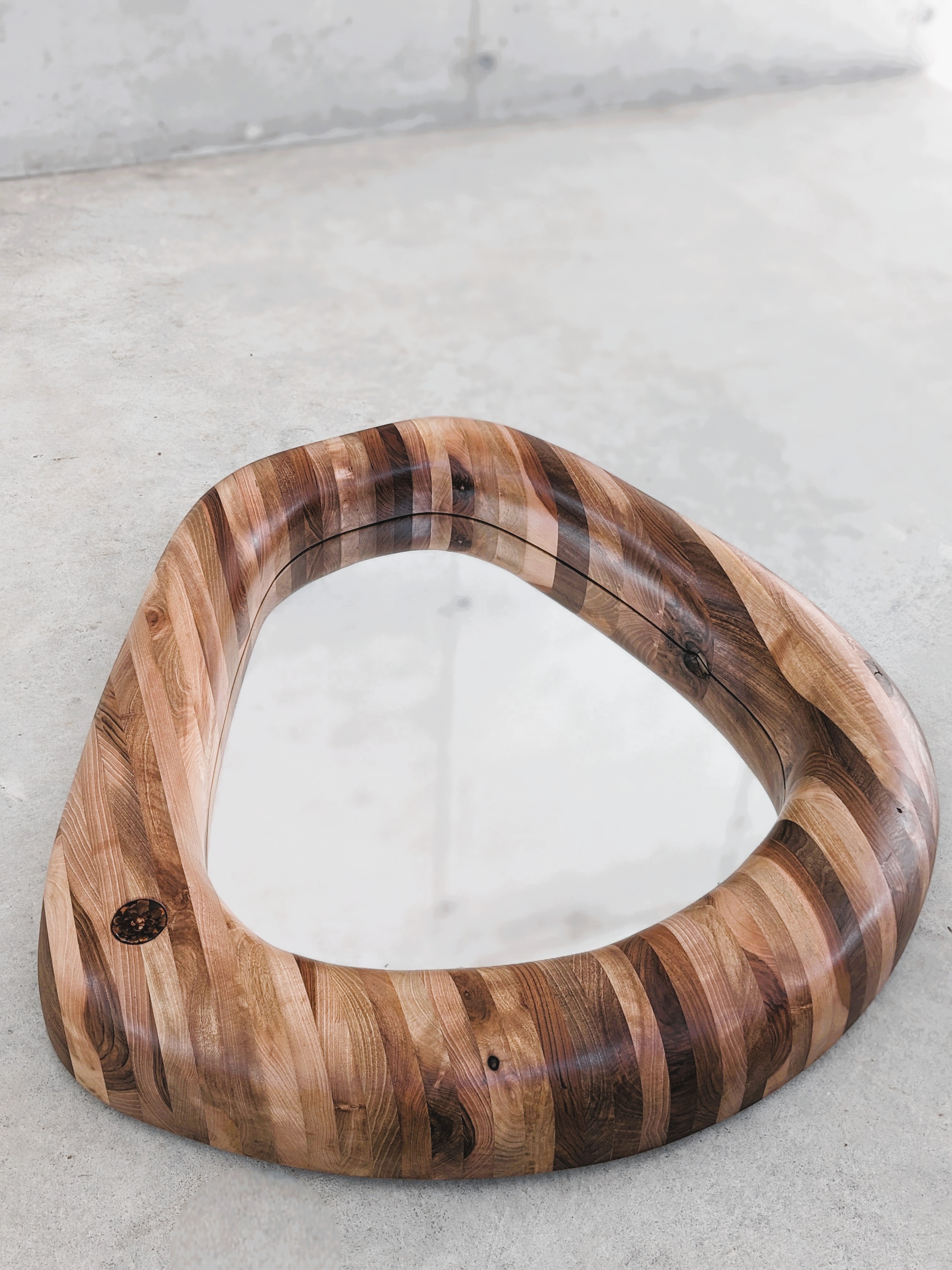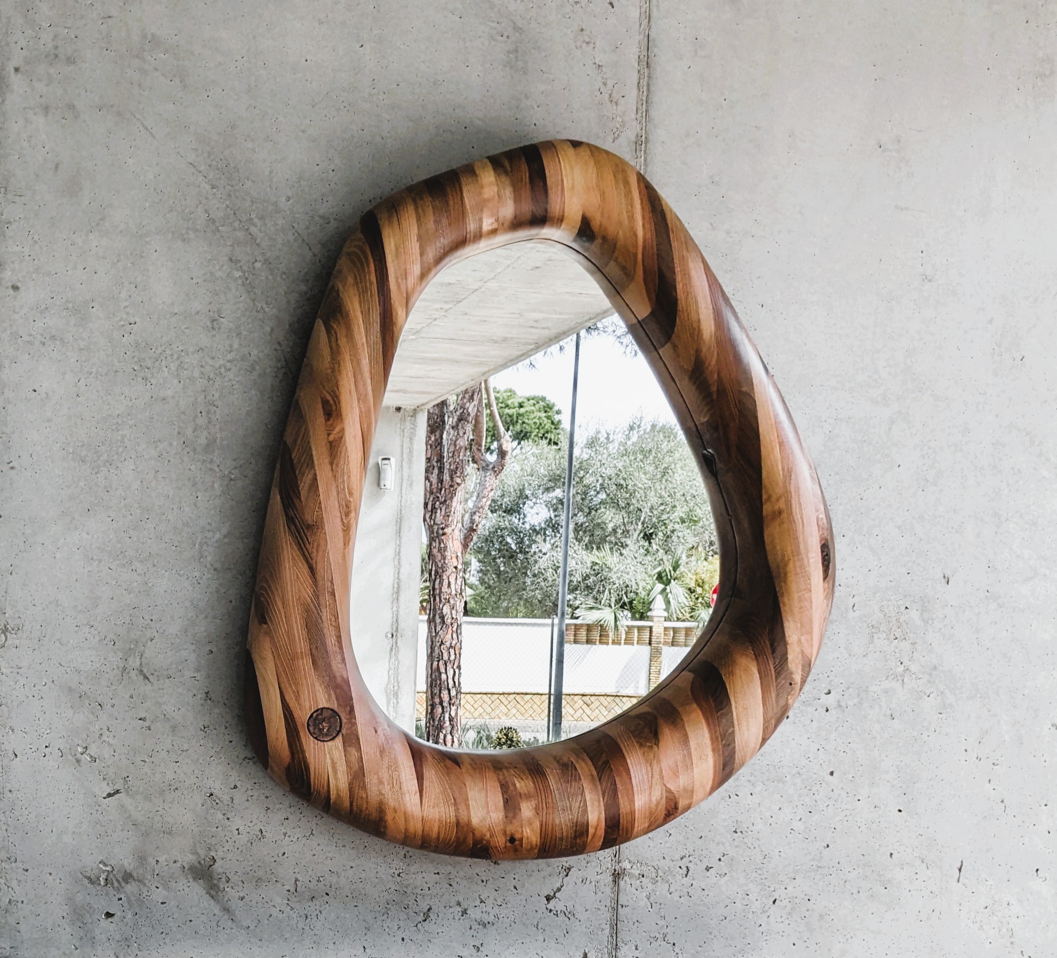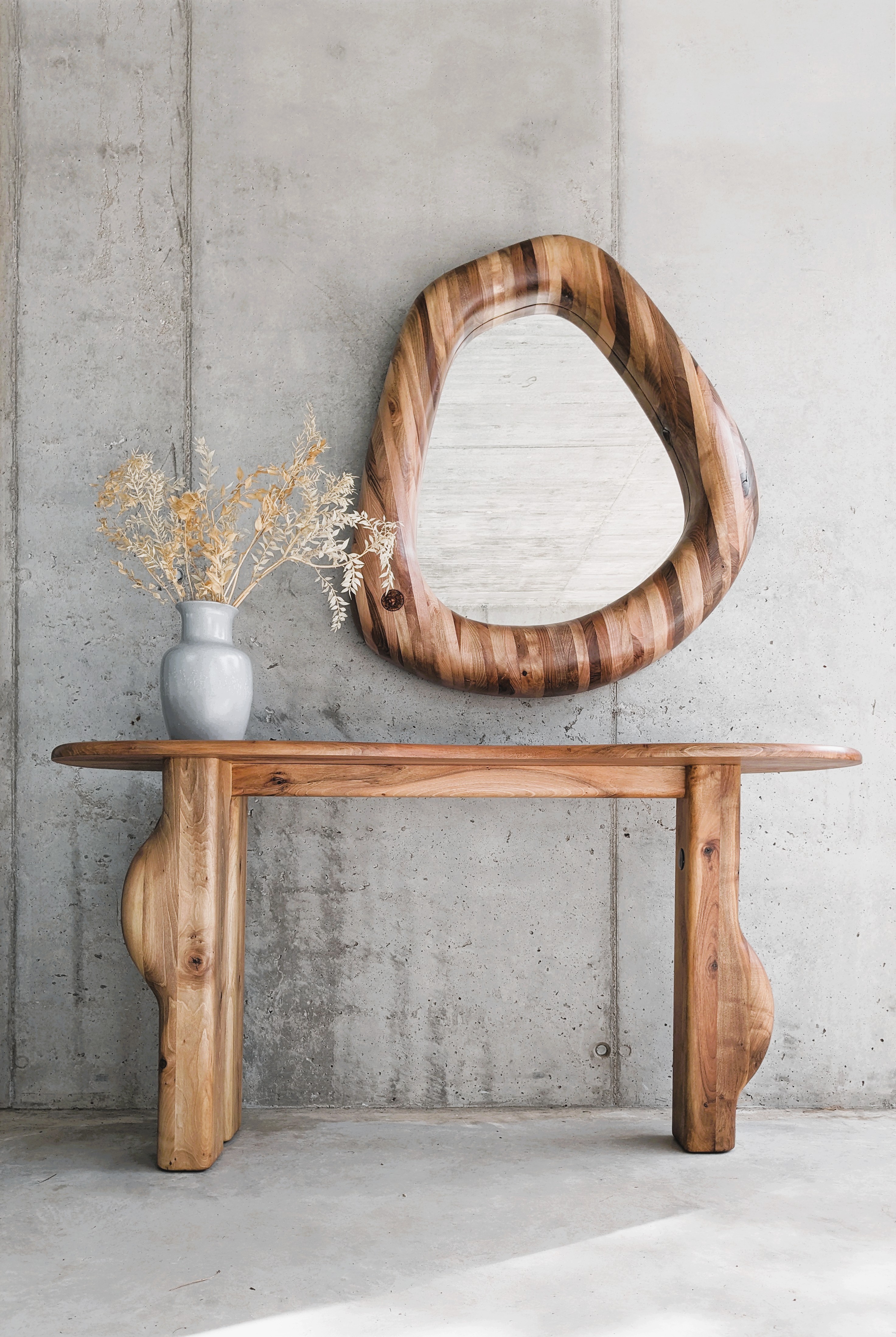 The frame itself is voluminous and organic in form — shaped rather than constructed, with the weight and presence AMBER looks for even in modest pieces. At roughly 100 x 60cm, UC101 makes no grand claims. It is a mirror that belongs in an entrance hall, that works with whatever surrounds it, and that rewards a closer look.