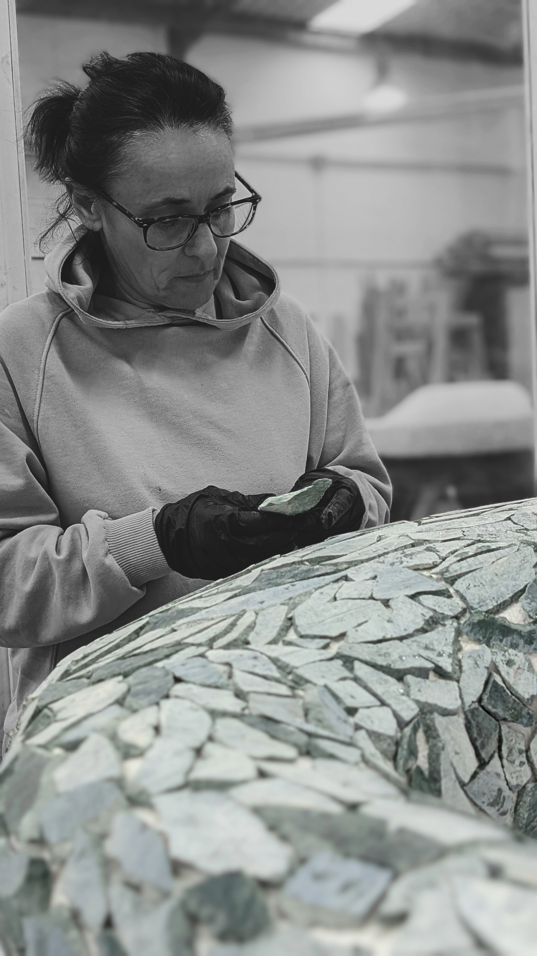 Next door to the workshop is one of the best stone suppliers we know — a place we enjoy getting lost in. Like most stone workshops, it has a back yard: a kind of death row, where the offcuts left behind by the grand, magnificent slab that now graces some kitchen or living room wait out their days before the garbage skip comes.