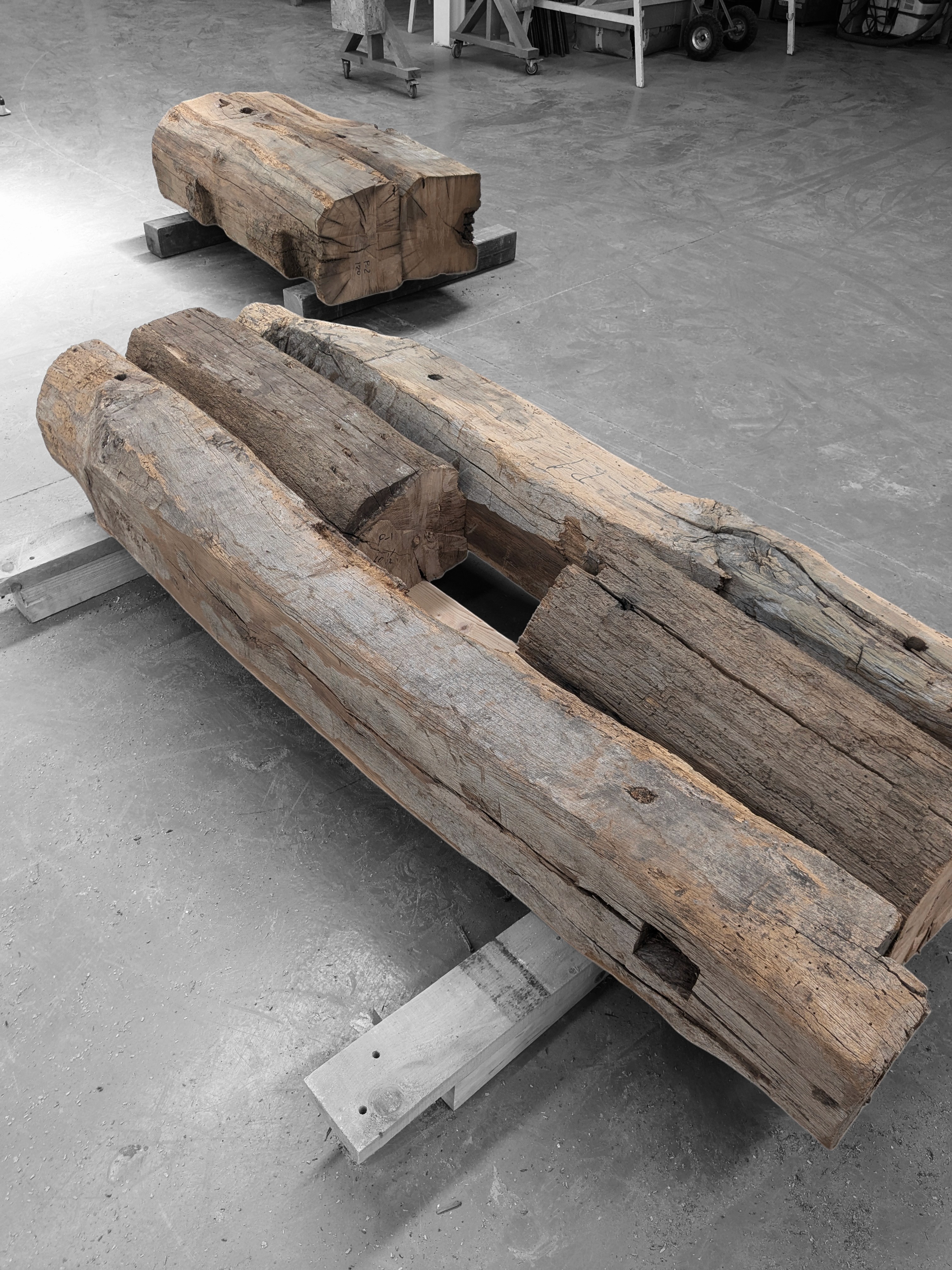 Heavily deteriorated old oak beams