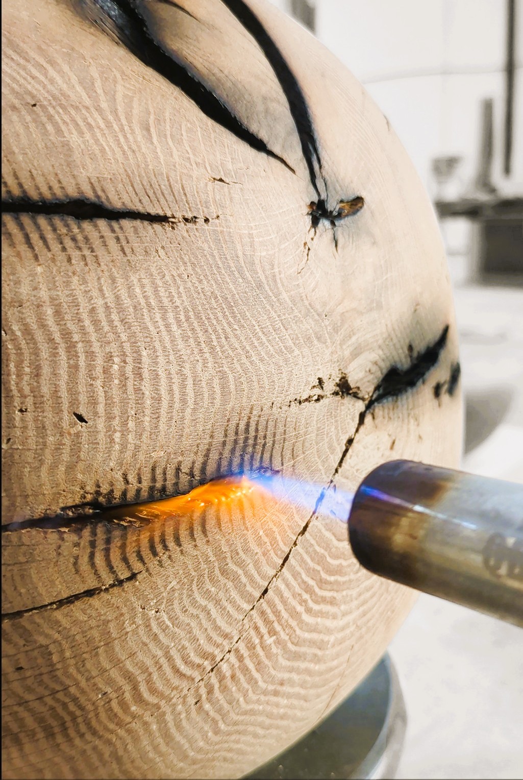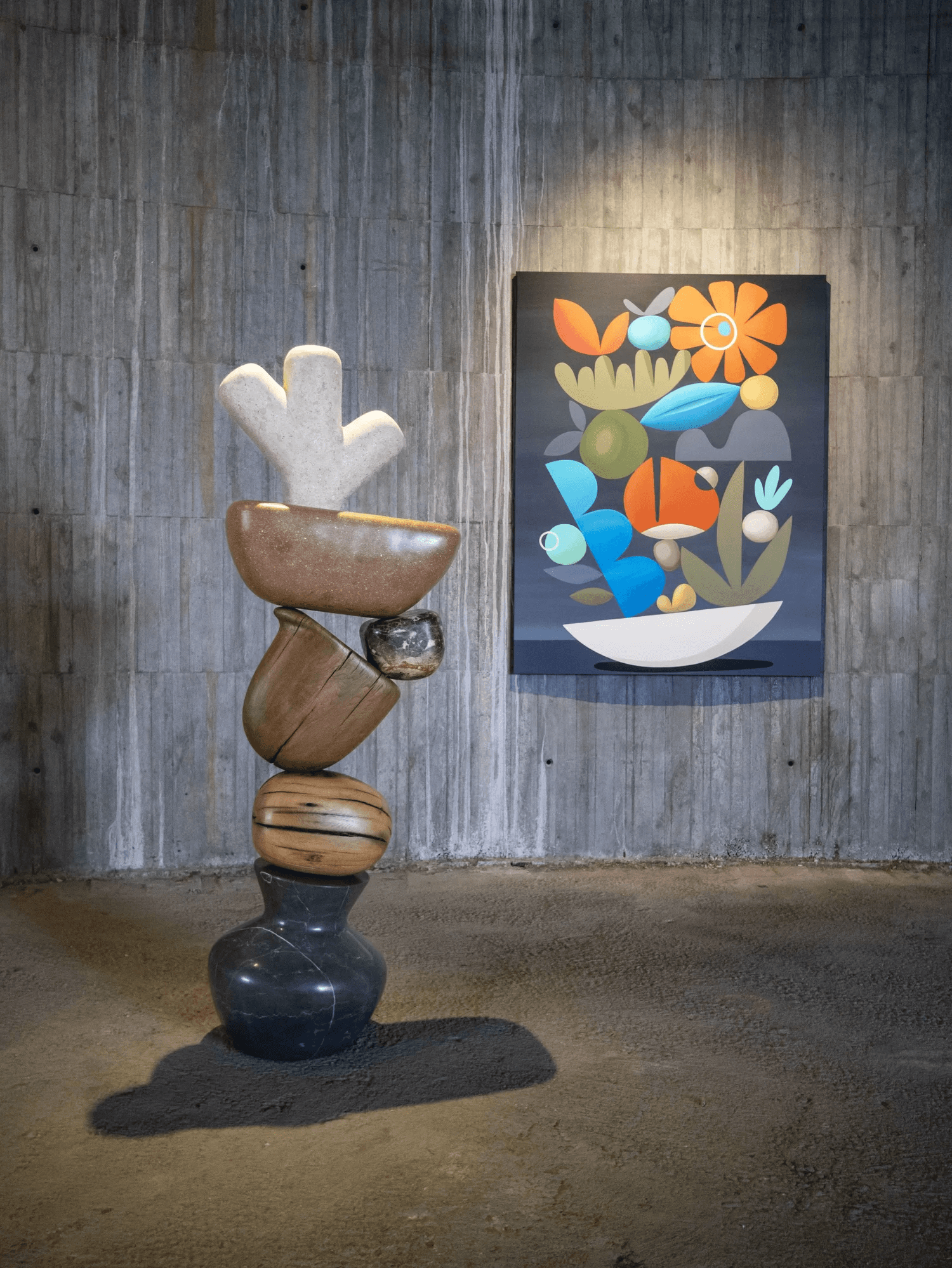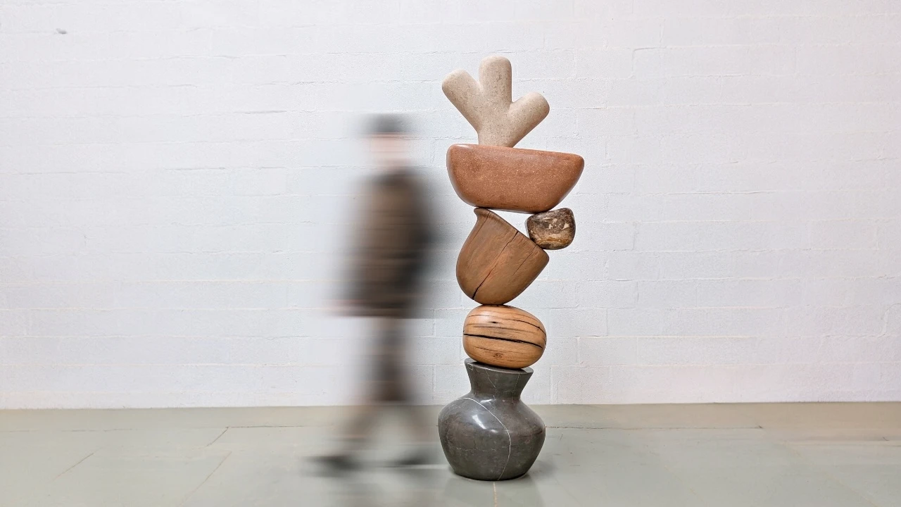 The exchange was natural: Rubén brought his artistic language, AMBER brought the physical world — materials with weight, texture and memory, and the structural knowledge to make six pieces in apparent imbalance stand solidly and last.