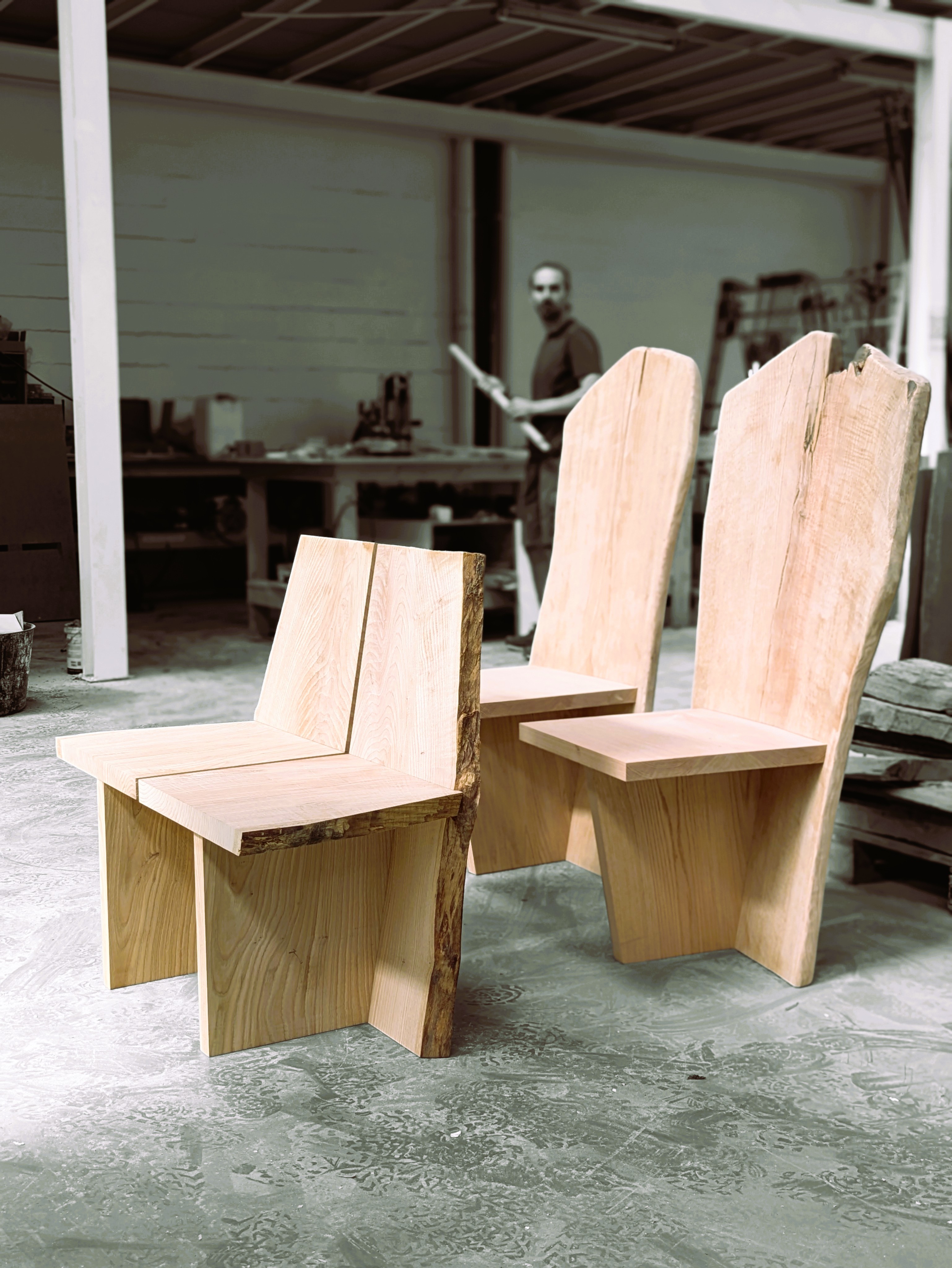 Two seats that began as a material problem and became, in the end, exactly what the wood was always shaped to be.